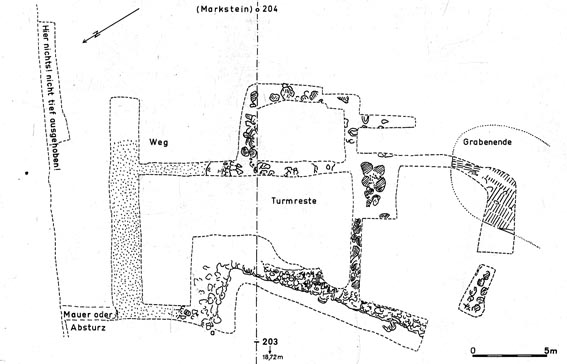 fand ich 1950 in den Ortsakten (Die Befestigungsanlage liegt heute auf
